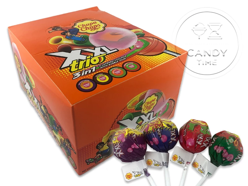 Chupa Chups, the kings of lollipops bring you a 3 in 1 layered lollipop featuring a bubble gum centre. This Box contains 20 assorted flavour lollipops with 4 different flavour combinations.