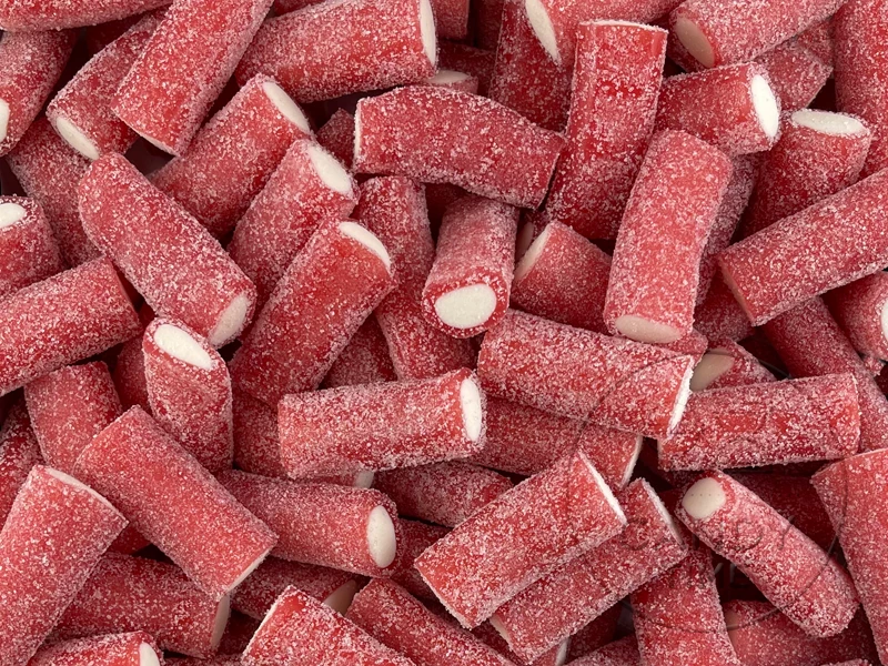 Damel from Spain bring the best European quality to their selection of delicious gummy products including these delicious mini jumbo sour strawberry tubes.