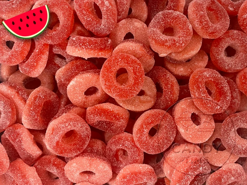 Delicious 2 layer watermelon flavoured gummy rings. These have a delicious smell of sweet watermelon but taste even better!