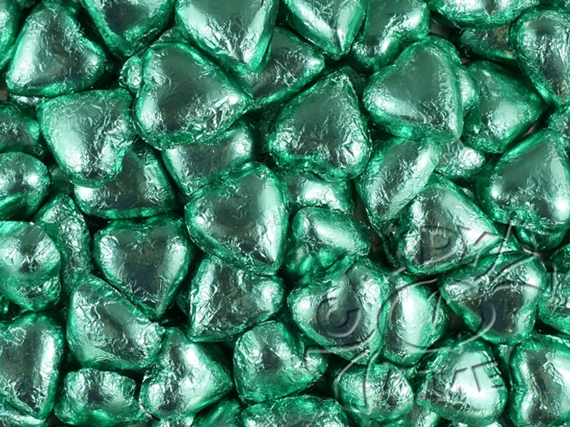 Milk Chocolate Foil Hearts 1kg Bag Light Green
