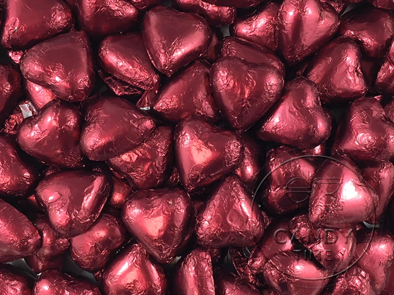 Milk Chocolate Foil Hearts 1Kg Burgundy