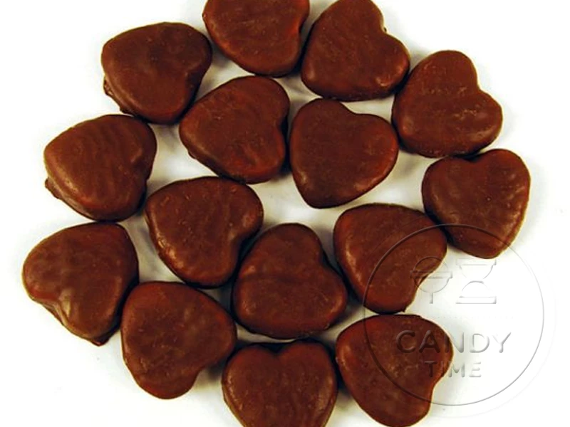 Delicious strawberry heart shaped chews coated in a smooth milk Chocolate.