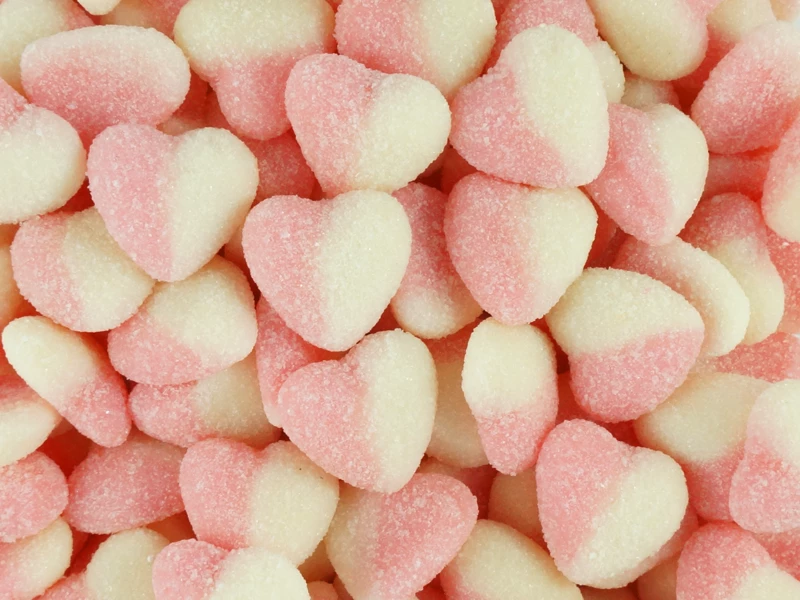 Heart shaped Sour Hearts – the perfect combination of gummy and a sugary, sour coating to top them off! Available in a variety of flavours including peach, grape, strawberry, blueberry, apple and raspberry.